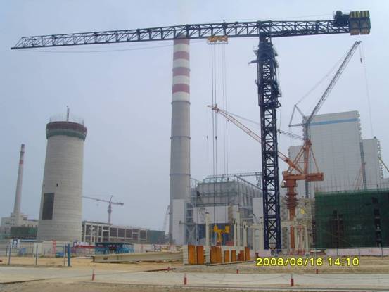 由東北電業管理局一公司承建100萬KW遼寧綏中電廠,采用中昇建機ZSC2800(ZSC70360)水平塔式起重機,最大吊重19.5m處吊140t,已于08/6/14立塔開始投入工程吊裝,此一水平塔式起重機為國內最大噸位之起重機,此產品具有吊裝速度快、吊裝覆蓋面積廣、抗風能力強、塔身剛度強、附著高度大、拆裝快速…..等優點,產品優異性深獲施工單位好評,此產品亦為我公司又一成功之超大型起重設備。