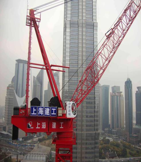 由上海建工公司承建的上海中心大廈工程采用了中昇建機塔機ZSL2700,吊裝順利進行。ZSL2700在世界高層鋼結構建設中,屬超大型的內爬式動臂塔式起重機。ZSL2700采用柴油發動機引擎驅動,該塔機最大工作幅度為60m,而在27m吊裝幅度范圍內可吊重達100t,最大起升高度達632m,起升速度達110m/min。其吊裝性能和技術水平在國內處于領先地位!