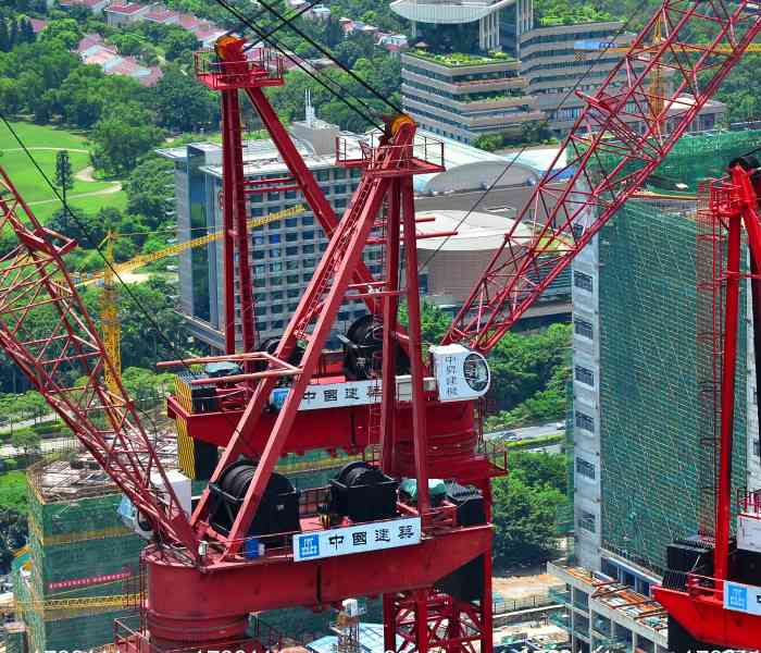 由中建一局承建的深圳平安國際金融大廈工程采用了中昇建機塔機ZSL2700兩臺,吊裝順利進行!ZSL2700在世界高層鋼結構建設中,屬超大型的內爬式動臂塔式起重機。ZSL2700采用柴油發動機引擎驅動,該塔機最大工作幅度為55m,而在27m吊裝幅度范圍內可吊重達100t,最大起升高度達660m,起升速度達110m/min。其吊裝性能和技術水平在國內處于領先地位!