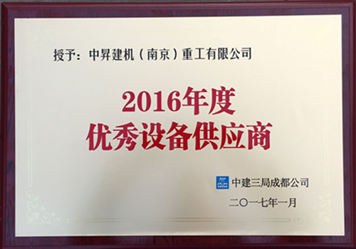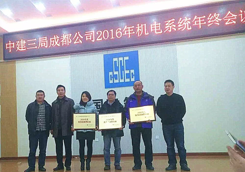 2017年1月9日,我公司在中建三局成都公司召開的年度供應商大會上,通過“專家組全年度定期設備檢查,項目服務評價綜合打分”的標準評核體系考核,從38家注冊供應商中脫穎而出,被評為“2016年度優秀供應商”的榮譽稱號。