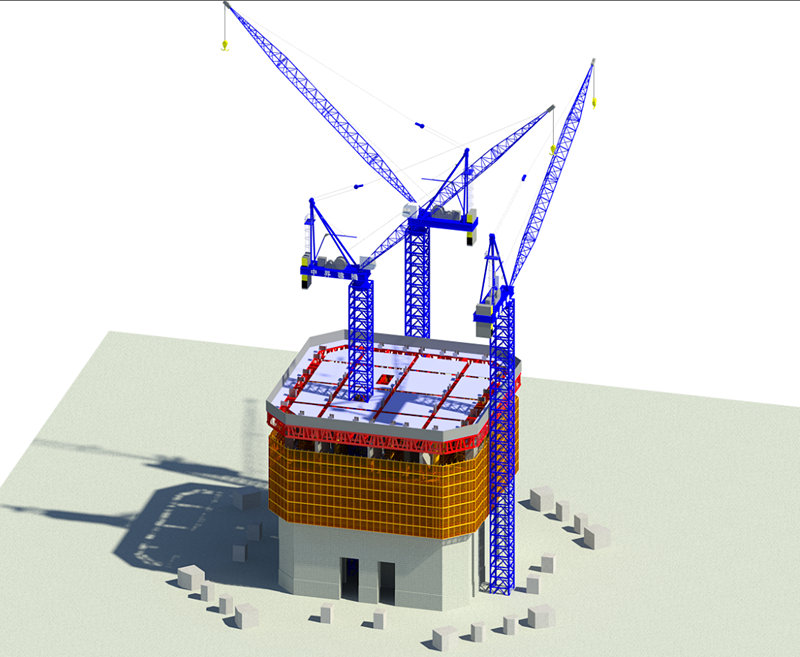該項目采用中昇建機ZSL3200一臺,ZSL2700一臺,ZSL1500兩臺。項目核心筒結(jié)構(gòu)高達482.6米,核心筒歷經(jīng)兩次收縮,外墻從底到頂不斷變化,對模板施工要求高,施工操作平臺設(shè)計困難,兼顧其他功能的同時,要考慮層高多變以及外墻不斷變化的因素。