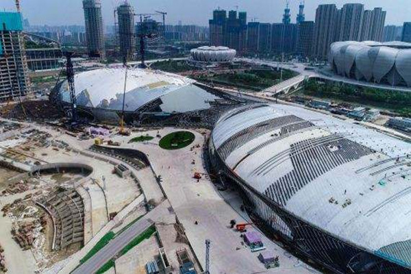 俯瞰杭州奧體中心主體育館、游泳館,呈“化蝶”姿態欲展翅飛翔,全球最大“玉琮”——綜合訓練館也已雄姿初展,錢江南岸的新時代杭州城市新地標群輪廓日益清晰。截至目前,主體育館和游泳館主體結構已通過驗收,金屬屋蓋實現整體閉水,機電設備安裝完成90%,室內精裝修完成65%,室外市政配套完成55%。綜合訓練館主體結構也已通過驗收,屋面、幕墻工程完成77%,機電設備安裝完成85%,室內精裝修完成50%,室外市政配套完成90%。