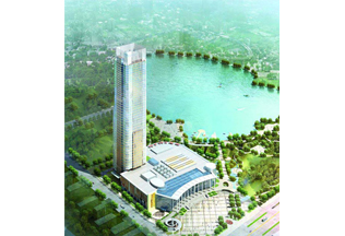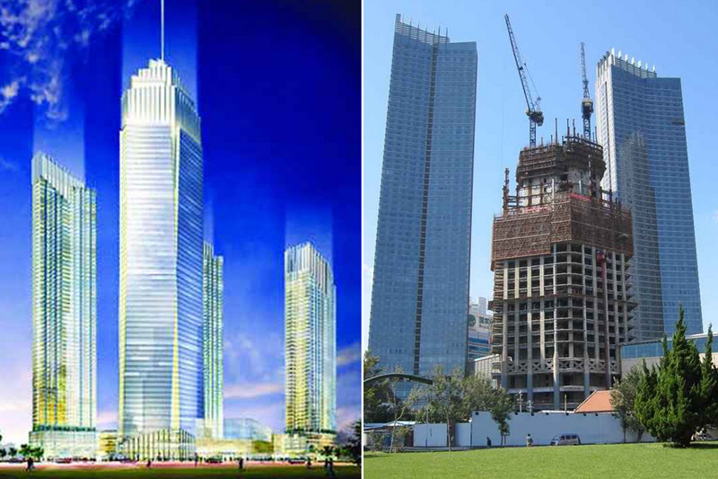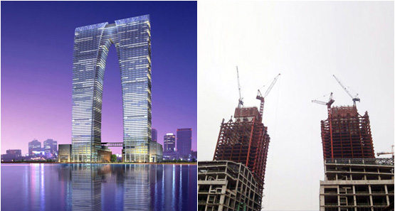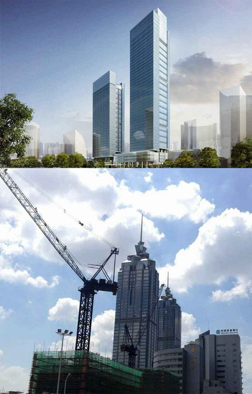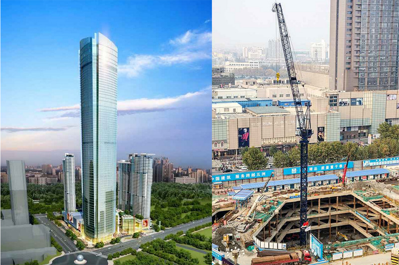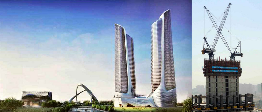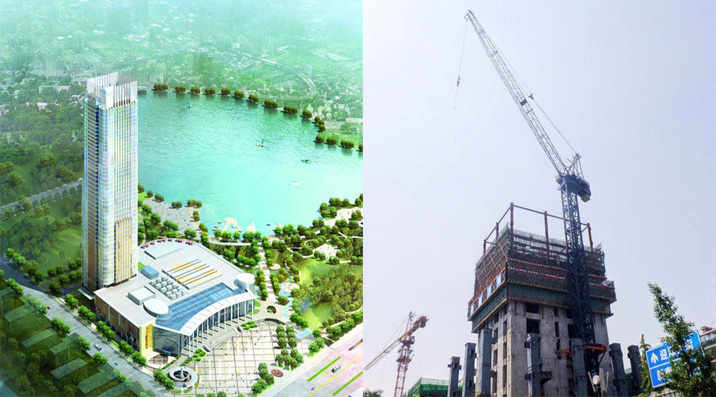 建筑高度380米,采用中昇建機ZSL1250(64T)兩臺,ZSL750(50T)一臺。