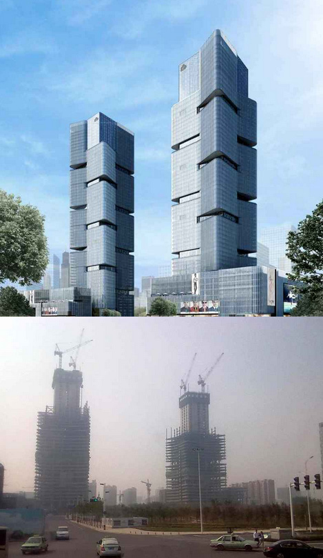 施工高度323米,采用中昇建機ZSL500兩臺(最大吊重32t)