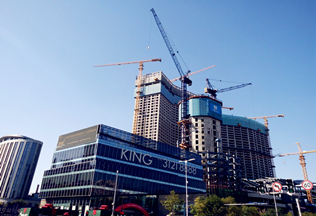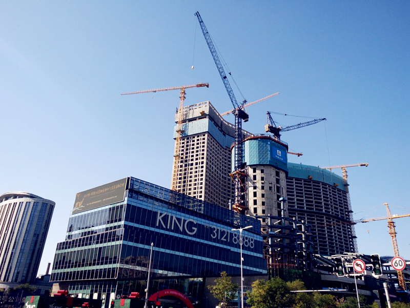 建筑主體高度438米,采用中昇建機ZSL1250(64T)及ZSL380(32T)各一臺。