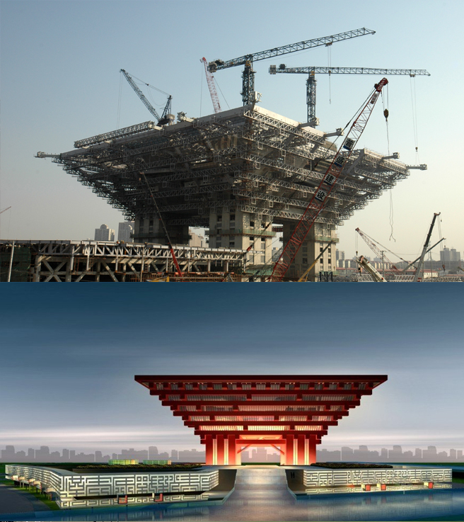 中國館建筑面積2萬平方米,采用中昇建機ZSL50170(50T)一臺、ZSC60200(60T)二臺。地區館建筑面積3萬平方米,采用中昇建機ZSL1000(50T)、ZSC30240(60T)、ZSL22300(50T)各一臺。